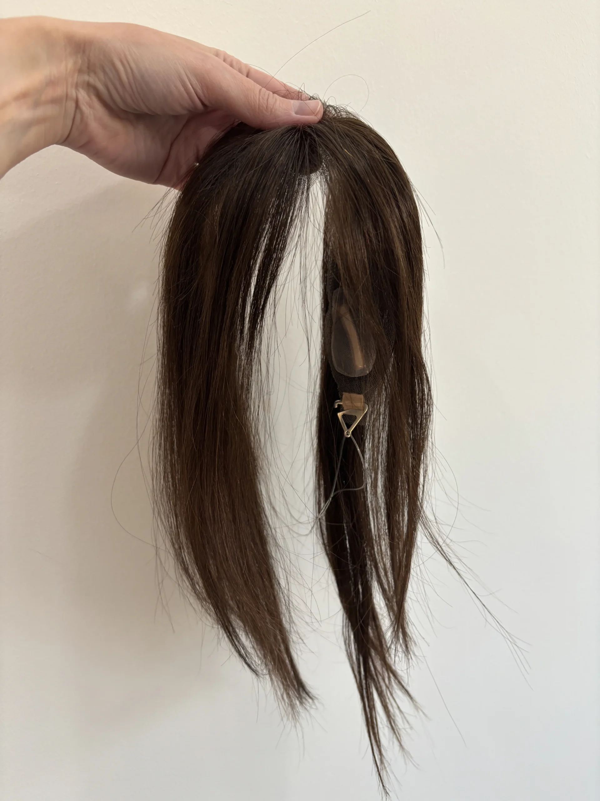 • Straight Brazilian natural hair manually implanted on a Swiss lace/tulle band (thin, breathable material)